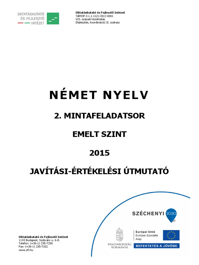 Nemet Nyelv 2 Mintafeladatsor Emelt Szint 2015 Javitasi Ertekelesi Utmutato