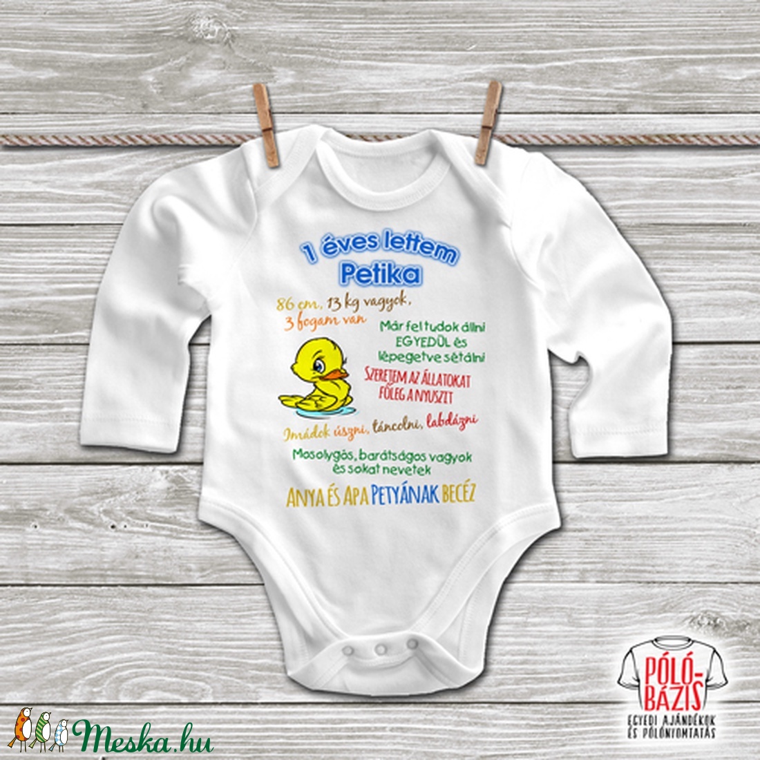 Baby Body 1 Eves Lettem Kek Bbszul008 Szulinapos Bodyk Baby Termekek Parti Kellekek Egyedi Fenykepes Ajandektargyak Polo Bogre Parna Telefontok Koteny Egeralatet Faliora Baseba