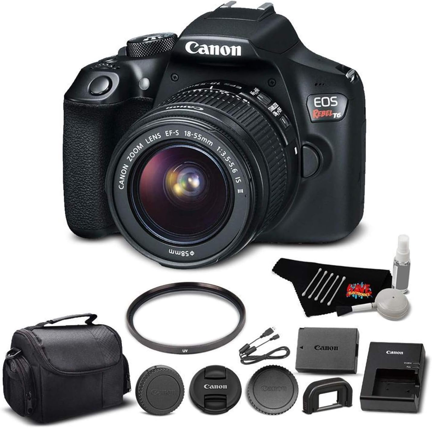 Amazon Com Canon Eos Rebel T6 Kit With Ef S 18 55mm F 3 5 5 6 Is Ii Lens Accessory Bundle Model Electronics Cloth Camera Photo