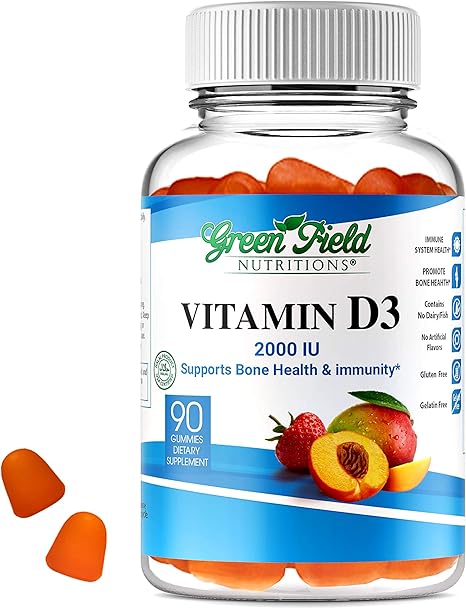 Amazon Com Greenfield Nutritions Gummies Vitamin D3 2000 Iu Certified Halal Gelatin Free And Product 90 Gummies Health Personal Care
