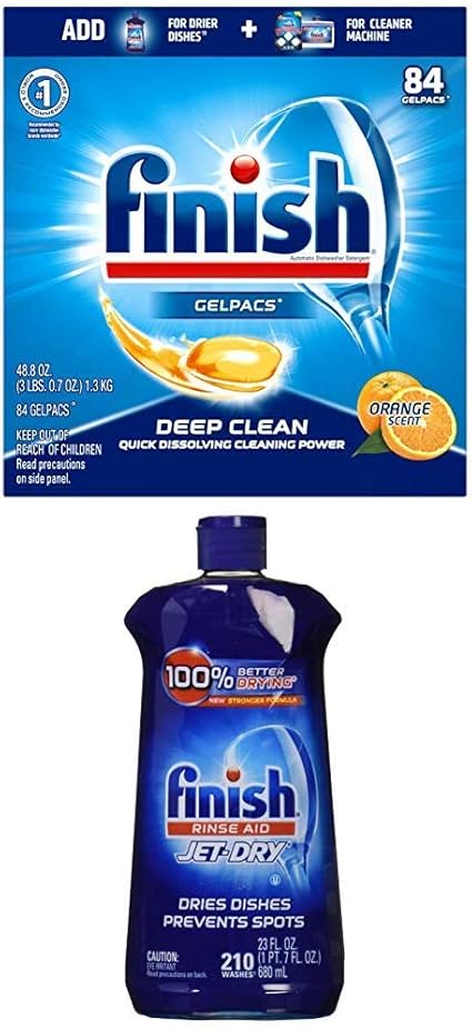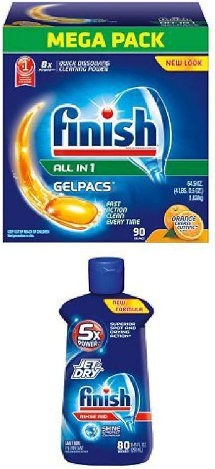 Amazon Com Finish Gelpacs Dishwasher Detergent Orange Scent 90 Count Finish Jet Dry Dishwasher Rinse Aid 8 45 Ounce Health Personal Care