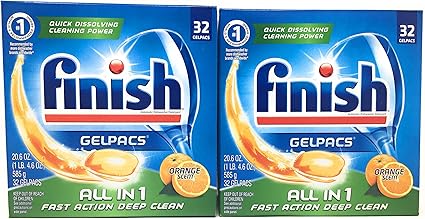 Amazon Com Finish All In 1 Gelpacs Orange 32 Tabs Dishwasher Detergent Tablets Pack Of 2 Health Personal Care