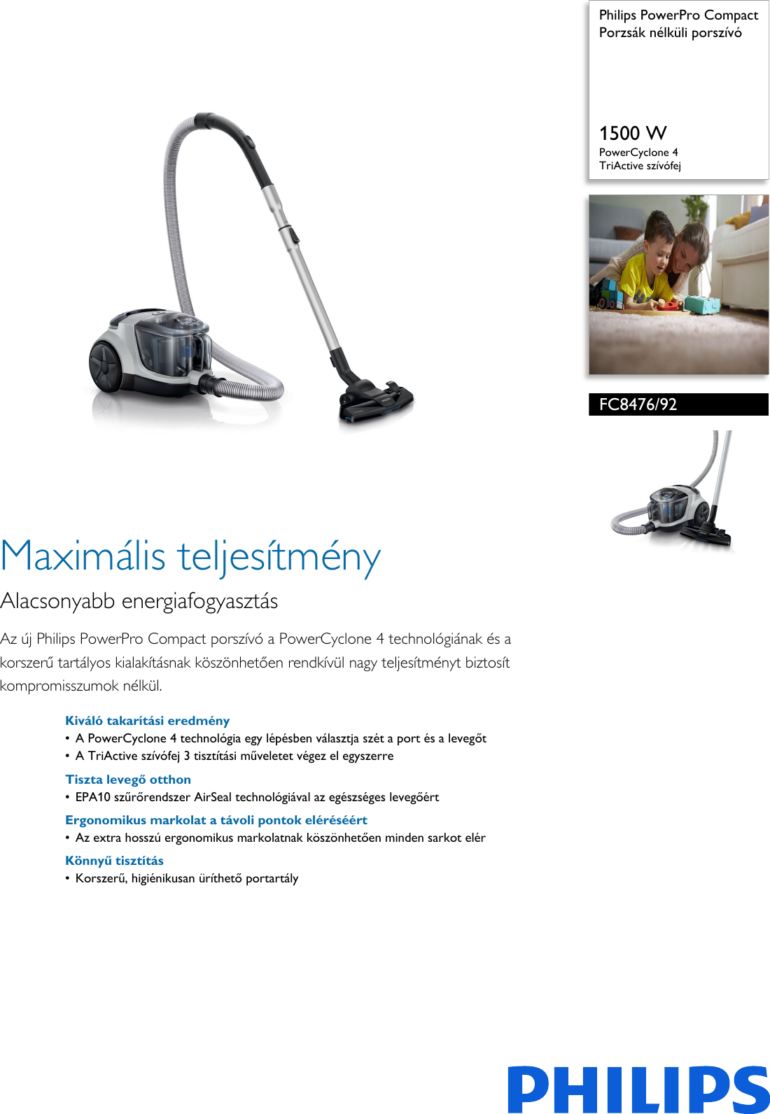 Philips Fc8476 92 Powerpro Compact Porzsak Nelkuli Porszivo Extreme Digital