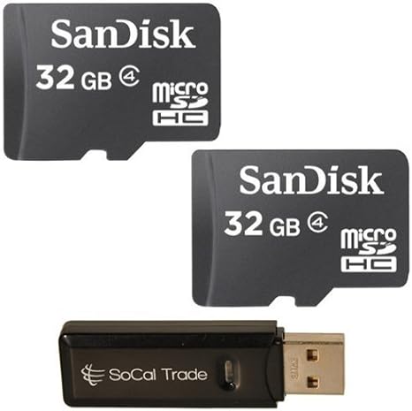 Amazon Com Sandisk 32gb X2 Microsd Hc Memory Card Class 4 With Socal Trade Tm Microsd Hc Xc Sd Hc Xc Dual Slot Card Reader Computers Accessories