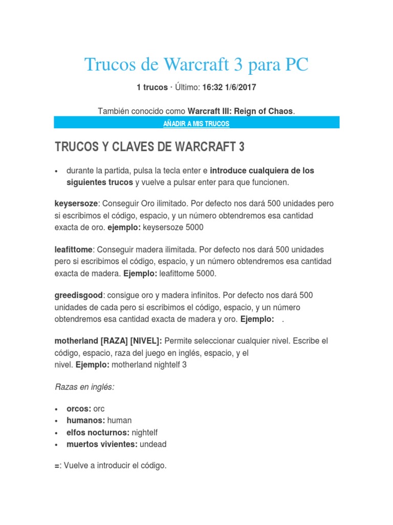 Trucos Para Warcraft 3 Reign Of Chaos Guiaytrucos Com