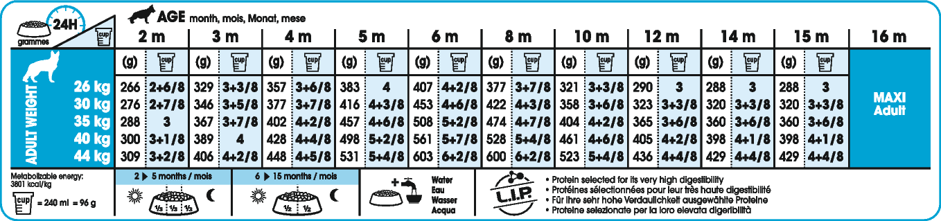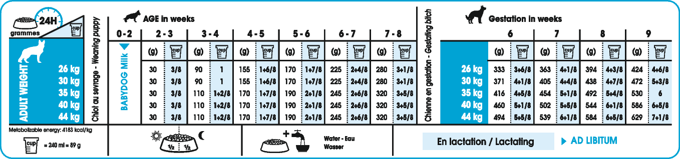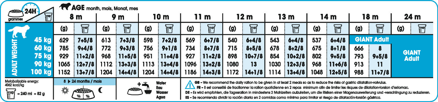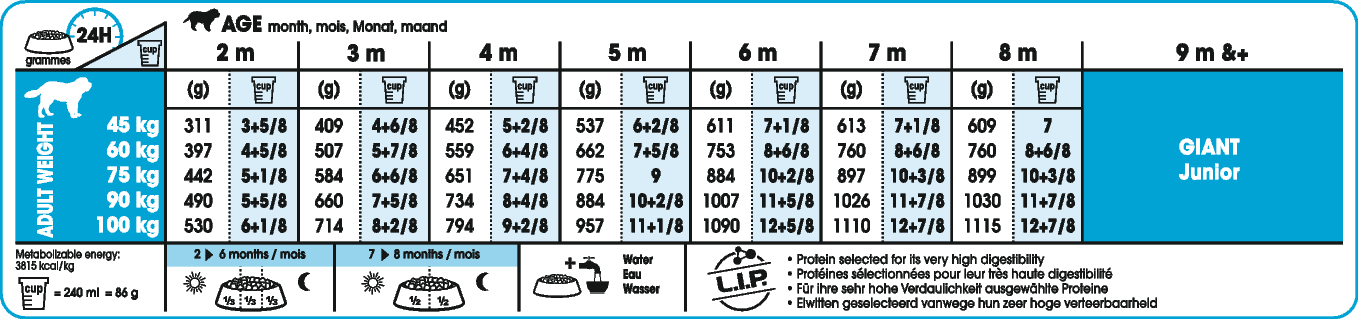 Voedingstabel Royal Canin Giant Junior