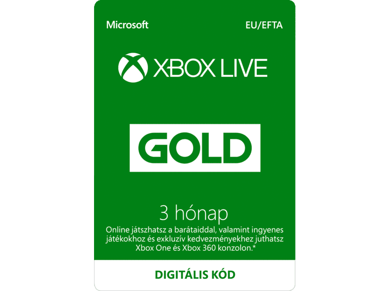 Xbox Live Gold Elofizetes 3 Honap Elektronikusan Letoltheto Szoftver Esd Xbox 360 Xbox One Media Markt Online Vasarlas
